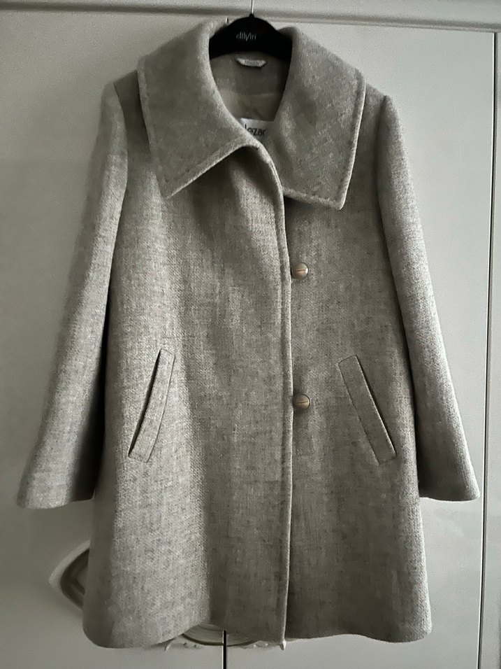 Geniş yakalı, ön düğmeli kadın kabanı. Yan cepleri bulunan, soğuk havalar için yumuşak ve sıcak dokulu bir model. Taş rengi marka temsili 44 beden uyumlu
