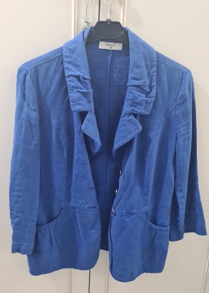 Kruvaze kol çok sık bir keten ceket. 100de yüz keten kumas cok rahattir. Hicbir problemi yoktur.