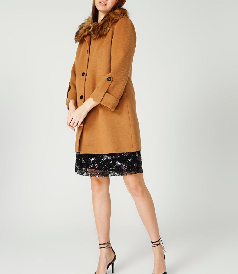 Ekol yün Kürklü Yaka Taba Kadın Kaban