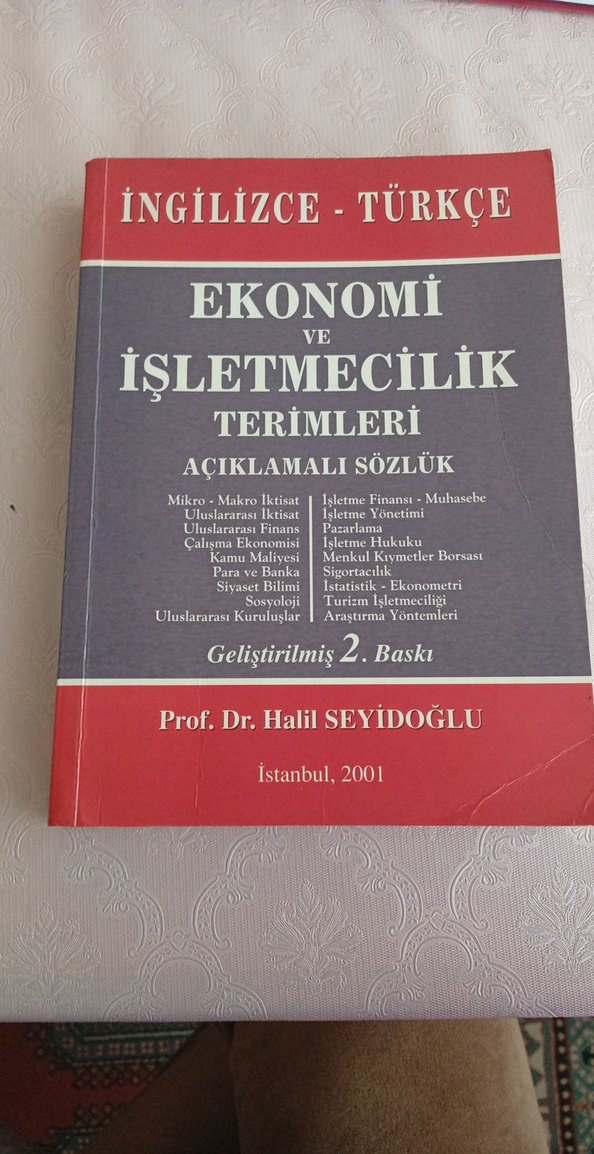 İngilizce-Türkçe ekonomik ve işletmecilik terimlerini kapsayan açıklamalı sözlük, mikro ve makro iktisat, finans, muhasebe, yönetim ve istatistik içerir.