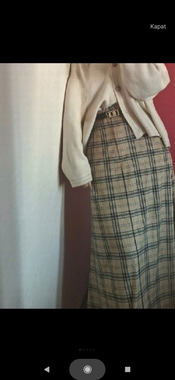 Ekose Desenli Bej Uzun Kadın Etek