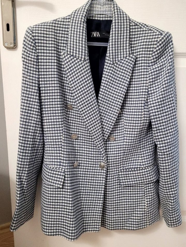 Ekose Desenli Düğmeli Kadın Blazer