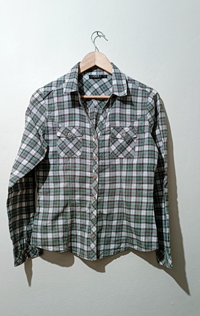 Ekose Desenli Düğmeli Kadın Gömlek