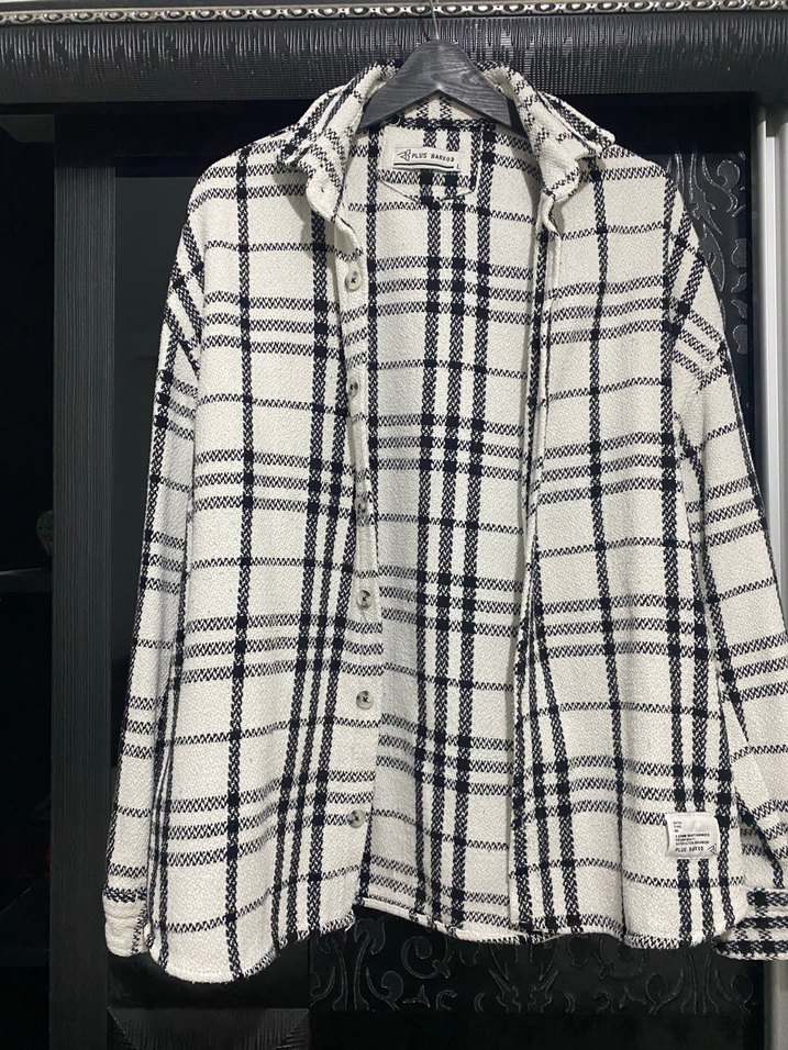 Düğmeli, uzun kollu ve bol kesim ünisex oduncu gömleği Gri beyaz ekose desenli, yumuşak pamuklu kumaştan üretilmiştir. Rahat sokak stili için uygundur.