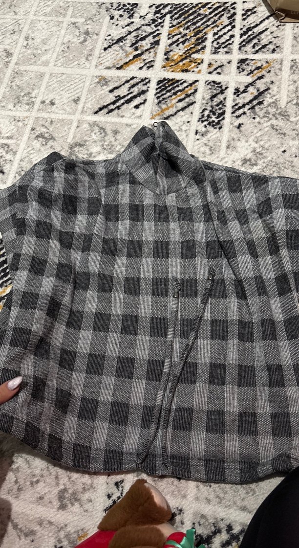 Gri ekose desenli hamile ceketi, bol kesim, boğazlı yaka, uzun kollu ve fermuarlı ön detayıyla günlük kullanıma uygundur.