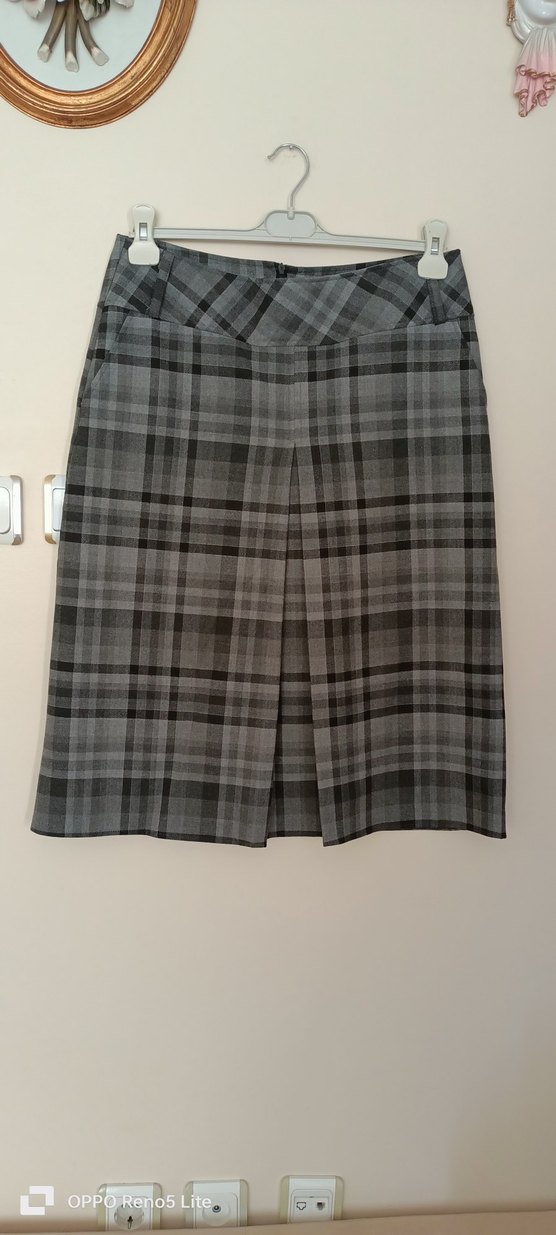 Gri renkte, ekose desenli ve pileli midi etek hediye geldi hiç kullanmadım sıfır ölçüleri resimlerde mevcuttur alan kişi güle güle kullansın