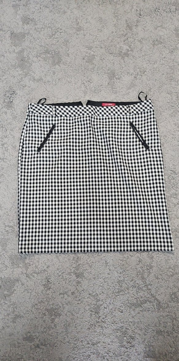 Gri ekose desenli midi etek, sentetik kumaştan, normal kesim ve fermuarlı ceplerle günlük sokak ve iş stili için uygun.