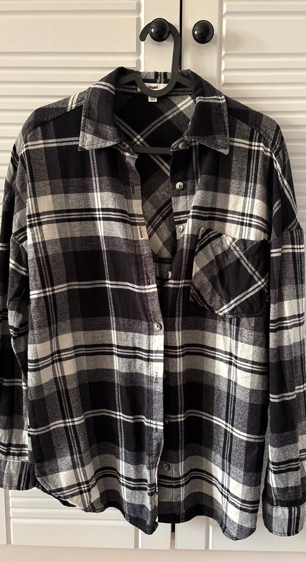 Kadın gömlek, bol kesim, uzun kollu ve düğmeli ön kısma sahiptir. Yumuşak pamuk kumaştan, yakalı ve tek cep detaylıdır. Ekose deseni günlük sokak tarzına uygundur.