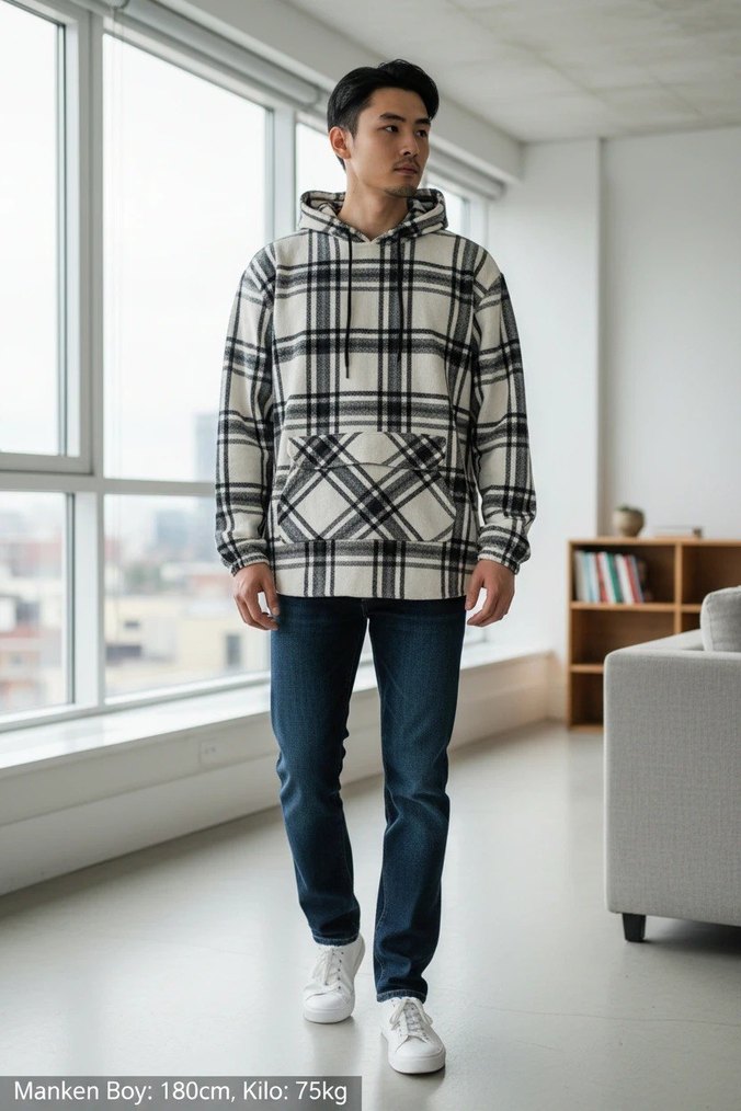Hem şık hem de sıcak tutan, kış ve bahar aylarının vazgeçilmezi olacak çok tarz bir parça! Kumaşı tok ve kaliteli, oduncu gömlek sıcaklığı ile sweatshirt rahatlığını birleştiriyor. Ürün Detayları: Durumu: [Sıfır / Etiketi Üzerinde -] Desen: Siyah-Beyaz klasik ekose (Plaid). Kesim: Modern ve rahat kesim (Regular/Slightly Oversize). Detaylar: Ön kısmında geniş kanguru cebi mevcuttur. Kapüşonludur ve ayarlanabilir ipleri vardır. Kumaş: Kalın, yumuşak dokulu ve sıcak tutan kışlık kumaş. Beden Bilgisi: Beden: Bütün bedenler mevcuttur. Beden bilgisi için iletişime geçebilirsiniz. Manken Ölçüleri: Fotoğraftaki manken 180 cm boyunda ve 75 kg ağırlığındadır. Üzerindeki duruşunu buna göre değerlendirebilirsiniz. Kombin Önerisi: Jean pantolonlar ve beyaz sneakerlar ile harika bir uyum yakalıyor. İster günlük hayatta ister hafta sonu aktivitelerinde rahatlıkla kullanabilirsiniz. Not: Hızlı kargo yapılır. Sorularınız için mesaj atabilirsiniz. Makul pazarlıklara açığım.
