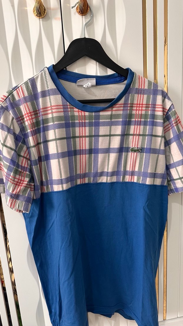 kısa kollu, yuvarlak yaka erkek tişörtü. Açık mavi alt kısmı ve ekose desenli üst kısmı ile rahat kesim sunar. Sentetik kumaştan, günlük kullanıma uygun.