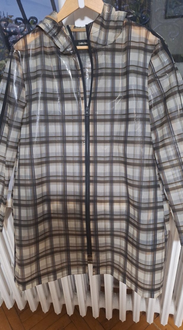 Gri renkte, ekose desenli midi boy kadın ceket, bol kesim ve uzun kollu. Notlu yaka ve düğme detayları ile sokak modasına uygun.