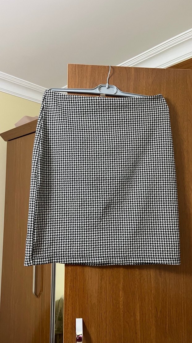 Sentetik kumaştan, pilili ve ekose desenli midi uzunlukta, günlük sokak stili için uygun, normal kesim etek.