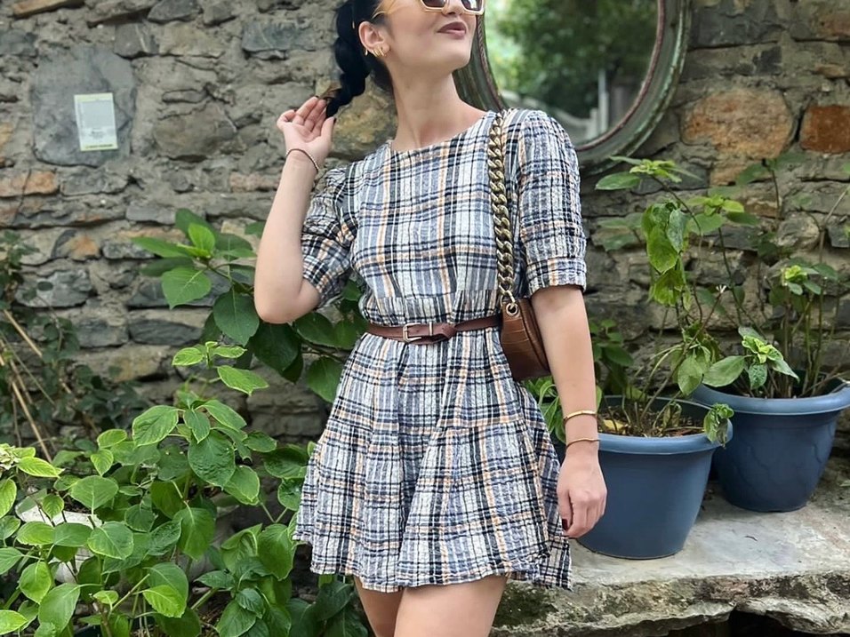 Ekose Desenli Mini Elbise