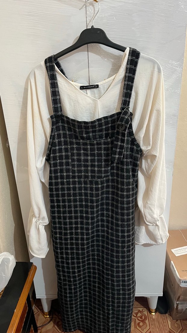 Ekose Desenli Pamuklu Midi Askılı Elbise ve gömlek