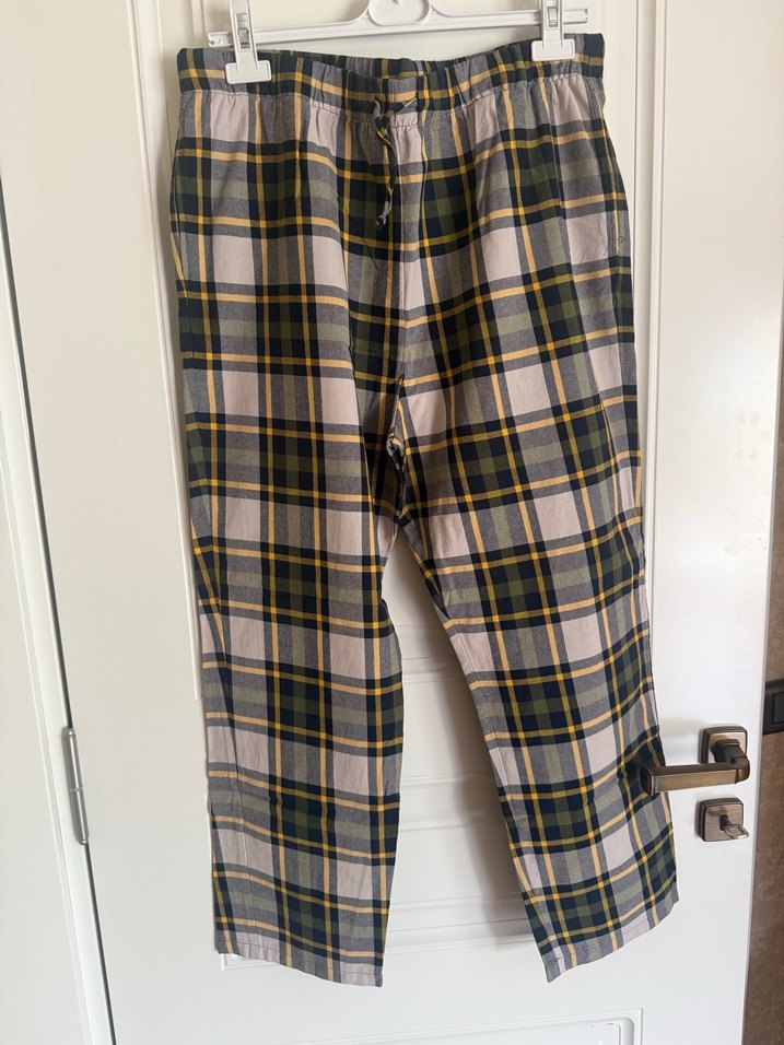 bol kesim pantolon, gri ekose desenli Rahat ve günlük kullanıma uygun. Pijama altı
