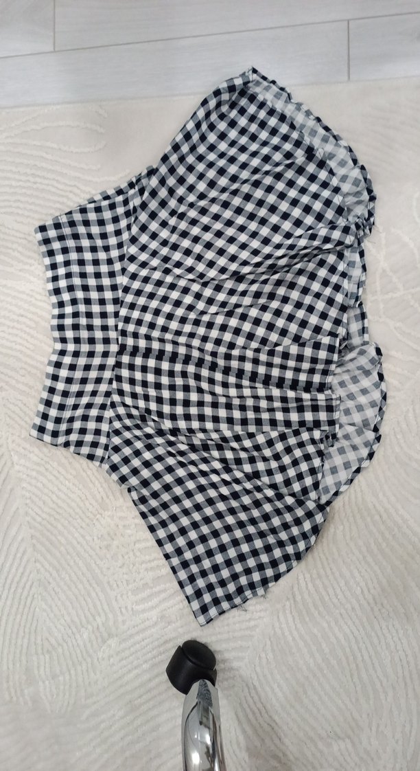 şortlu gizli fermuar detaylı arkası içten lastikli. pilelerin boyunda orantısızlık var giyilince özellikle bakılmadıkca farkedilmiyor cok rahatsız ederse basit bi dikiş makinesi ile düzeltilebilir ufak bi yerinde dökülme olmus ve bi iki yerinde son fotoğraftaki gibi ip fazlalığı var ama kesilse yeter