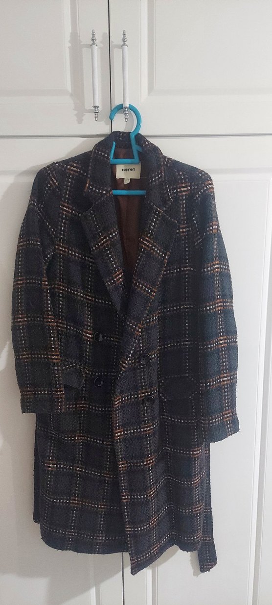 Ekose desenli, çift düğmeli uzun kaban, yumuşak ve sıcak astarlı, klasik kesim ve yaka detayına sahip. 36 beden deformasyon yoktur