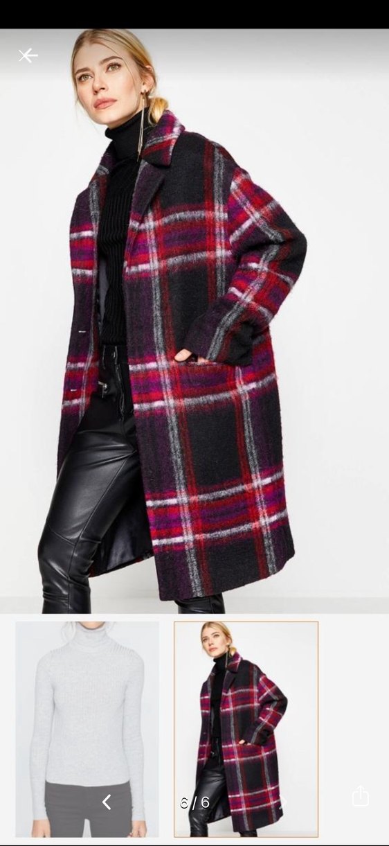 Kırmızı ve siyah ekose desenli uzun kaban, yumuşak ve sıcak tutan kumaştan üretilmiştir.