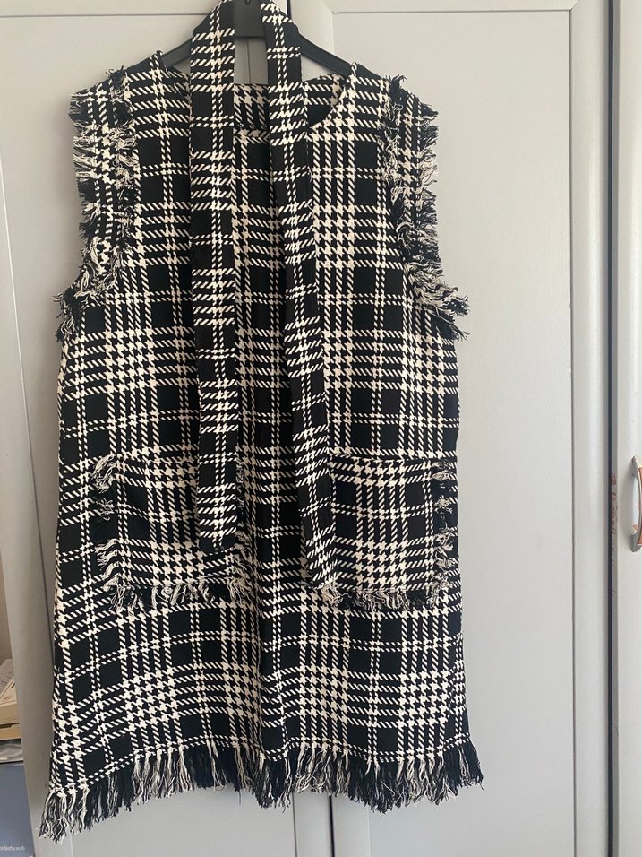 Ekose Desenli Uzun Kadın Yelek