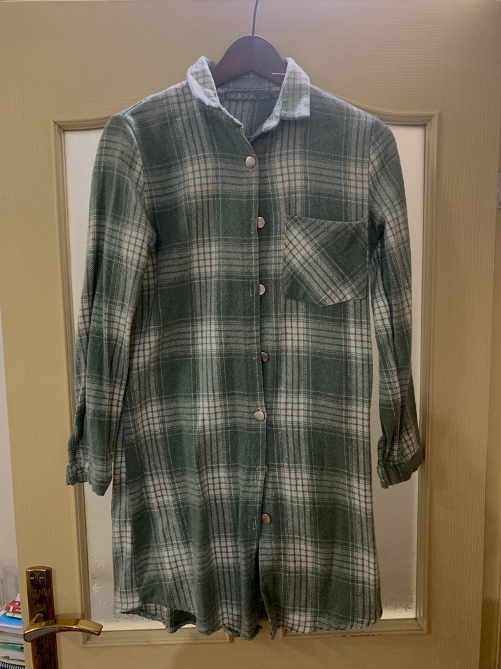Uzun kollu, yakalı ve düğmeli ekose desenli kadın gömleği. Yumuşak ve sıcak kumaştan, rahat bol kesim. Günlük kullanım için uygundur. S bedendir.