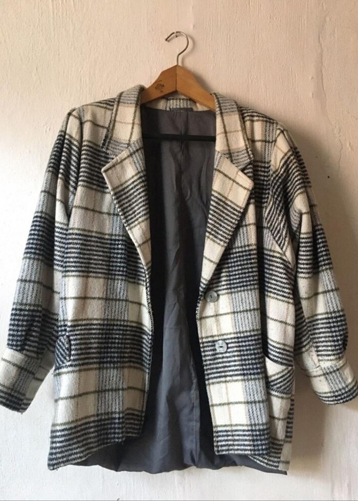Ekose desenli vatkalı vintage kaban