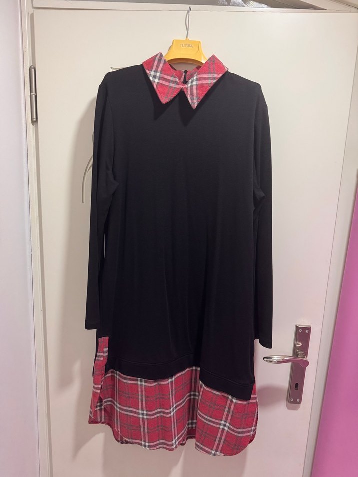 Siyah uzun kollu tunik, yakada ve etekte kırmızı ekose pilili detaylarla, bol kesim ve gotik tarz sunar. Marka temsilidir Mısra markasına aittir kalitesini bilen bilir beden değişikliğinden dolayı satıştadır 1-2 belki giyilmiştir. İki kol arası 49 boy 101 cm. Lütfen iyi inceleyip merak ettiklerinizi sorunuz iade alınmamaktadır