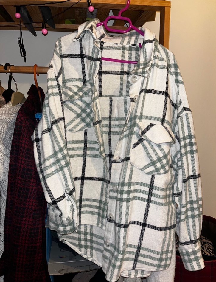 ekose desenli, düğmeli, notched lapel yakalı kadın gömleği. Yumuşak keten kumaştan, uzun kollu ve midi boyda, rahat ve şık bir sokak tarzı ürünü.