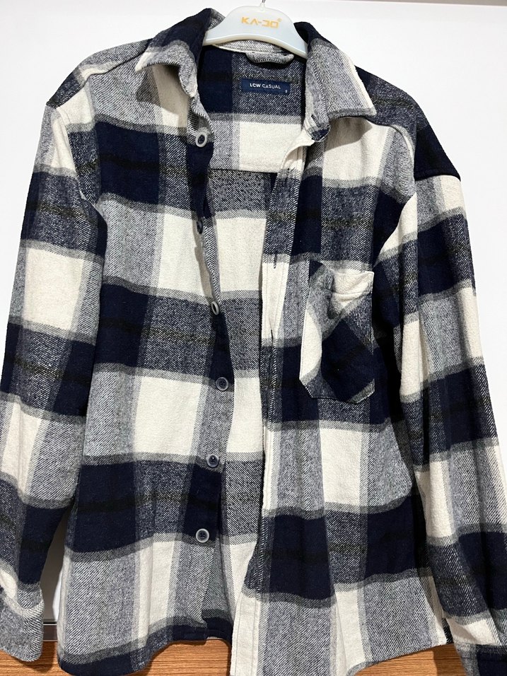 gri ekose desenli, düğmeli ve pamuklu uzun kollu gömlek. Notlu yaka ve bol kesimiyle rahat, gündelik kullanıma uygundur.