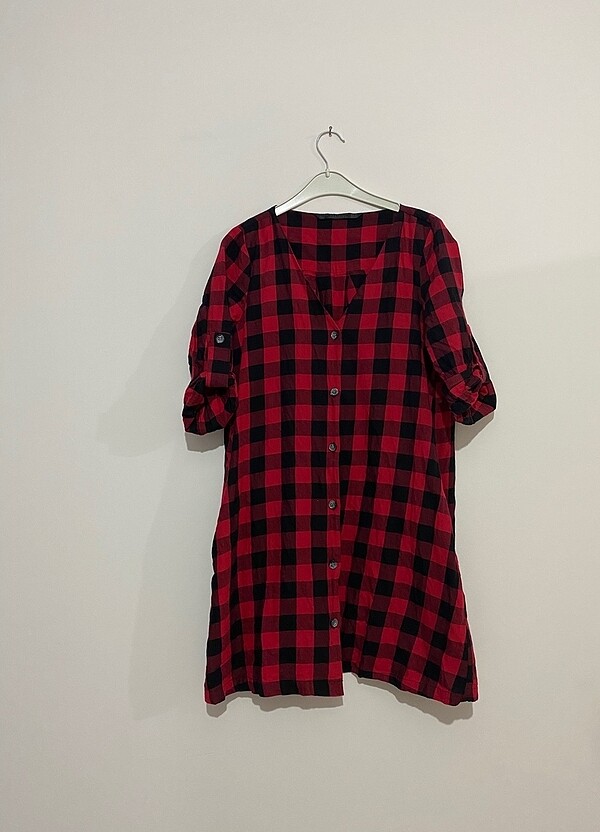 Ekose gömlek- elbise (tunik) - Görsel 1