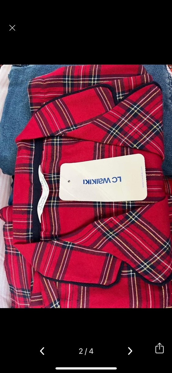 Bordo ekose desenli LC Waikiki pijama takımı.
