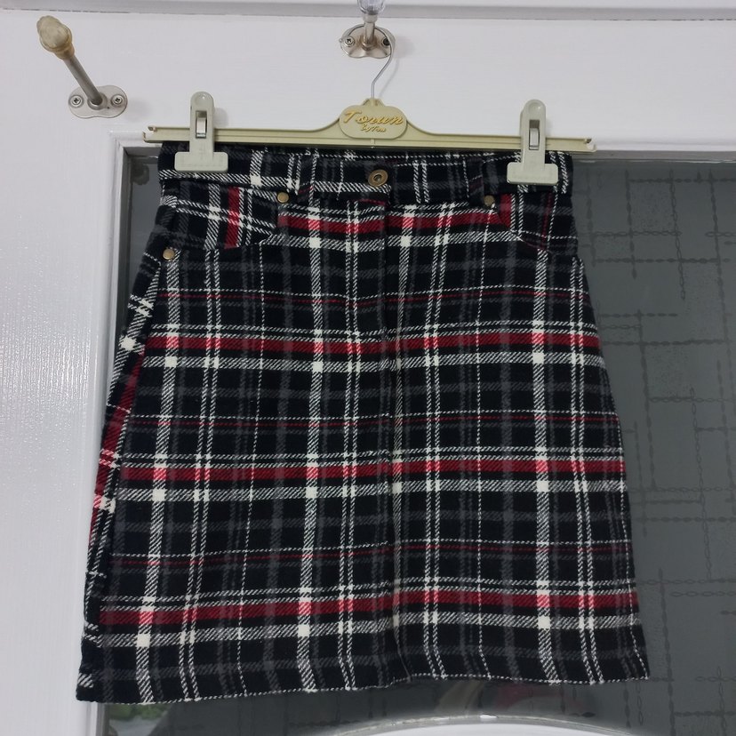 Ekose Kaşe Mini Etek - Görsel 1