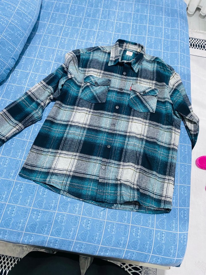 uzun kollu, yakalı gömlek. Bol kesim ve yumuşak, sıcak kumaş.