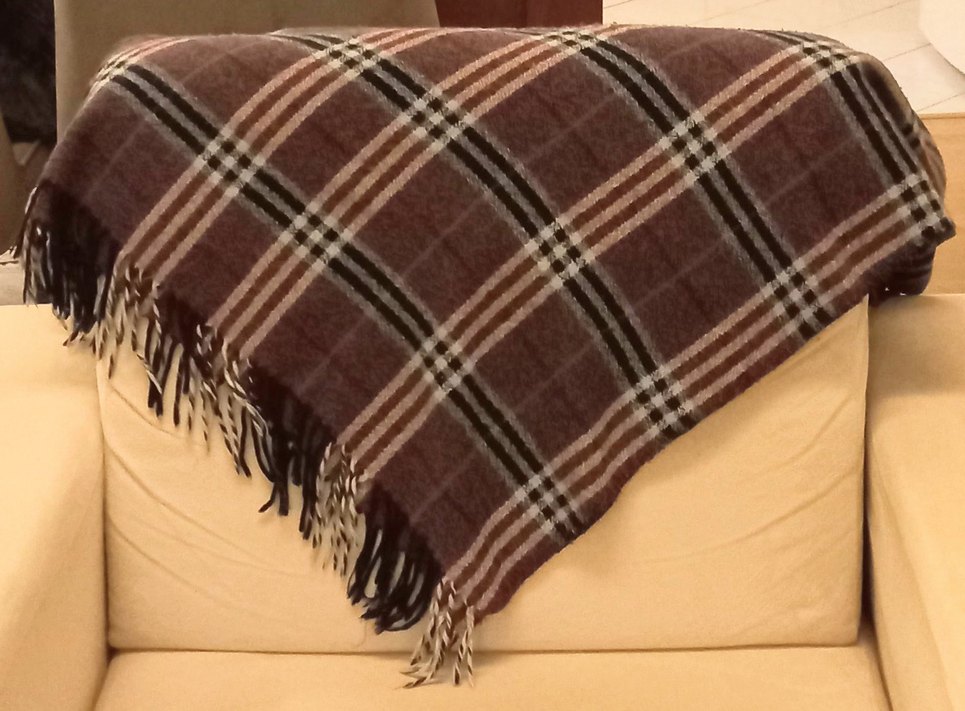 Mor, eflatun üzerine siyah ve beyaz ekose desenli tamamen yünlü kumaştan şal. Dikdörtgen şeklinde olan ve hiçbir defosu, özürü olmayan şalın ölçüleri 74 cm x 171 cm. Püsküllerinin uzunluğu ise 7 cm.