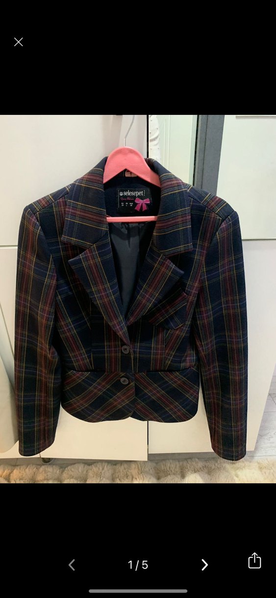 Ekoseli Az giyilmiş şık ceket 40 beden lacivert