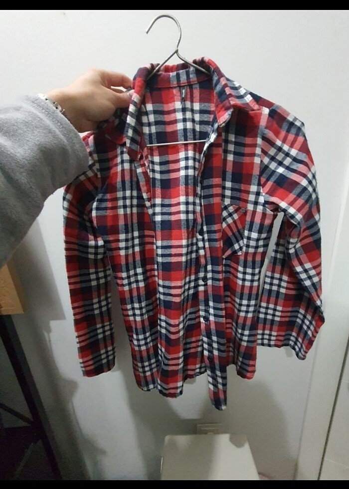 M Beden kareli oduncu gömleği tarzından hafif kumaş gömlek. hiçbir kusuru yoktur. kumaşı kadife değildir.