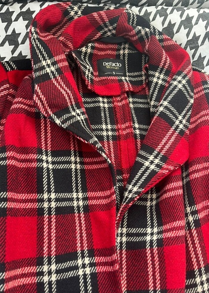 Kırmızılı ekoseli kaban çok kalın değil baharlık 1.55 boyunda duruşunu ekledim çok güzel rahat kullanımlı