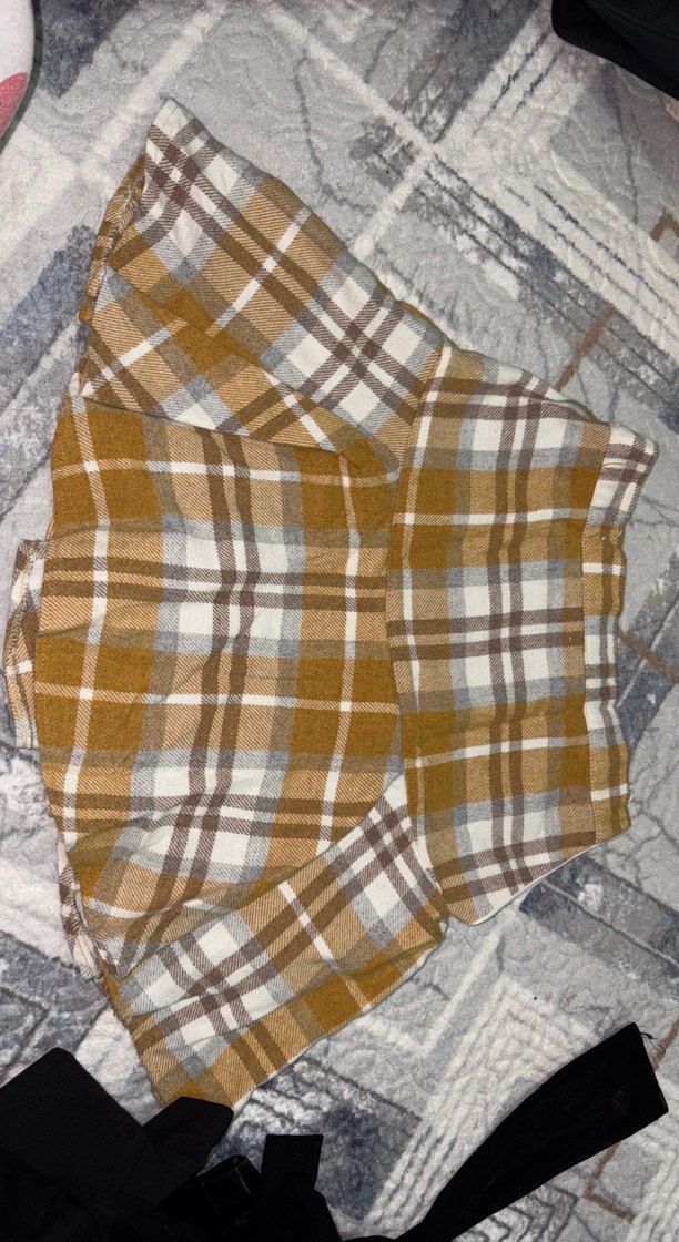Kahverengi ekoseli bu midi etek, pilili ve bol kesimlidir, yumuşak sentetik kumaştan yapılmıştır. Bohem ve retro sokak tarzına uygundur.