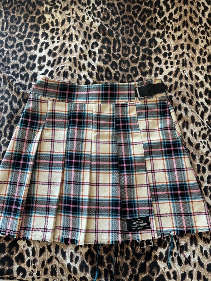 Çok renkli ekoseli mini etek, kemerli ve bol kesimdir. Sentetik kumaştan üretilmiş olup, gündelik kullanıma uygundur. Grunge punk tarzını yansıtır.
