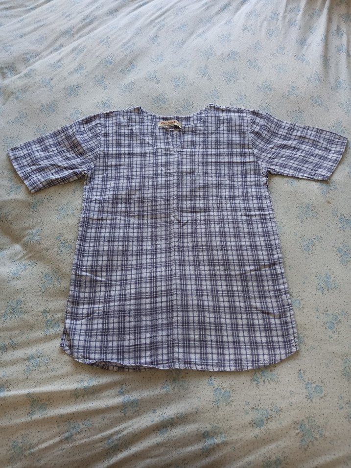 Ekoseli renkli, kısa kollu, düğmeli ve bol kesim pamuklu kız çocuk gömleğidir. Tekne yakalı ve bağlama desenlidir.