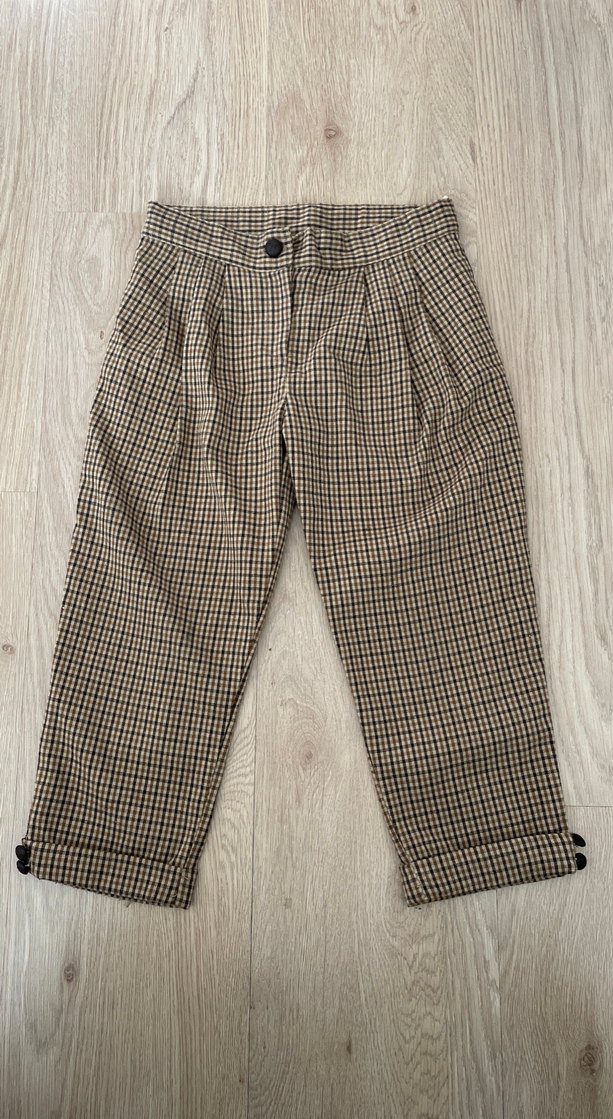 Ekoseli kız çocuk kumaş pantolon 4-5 yaş sütlü kahverengi camel