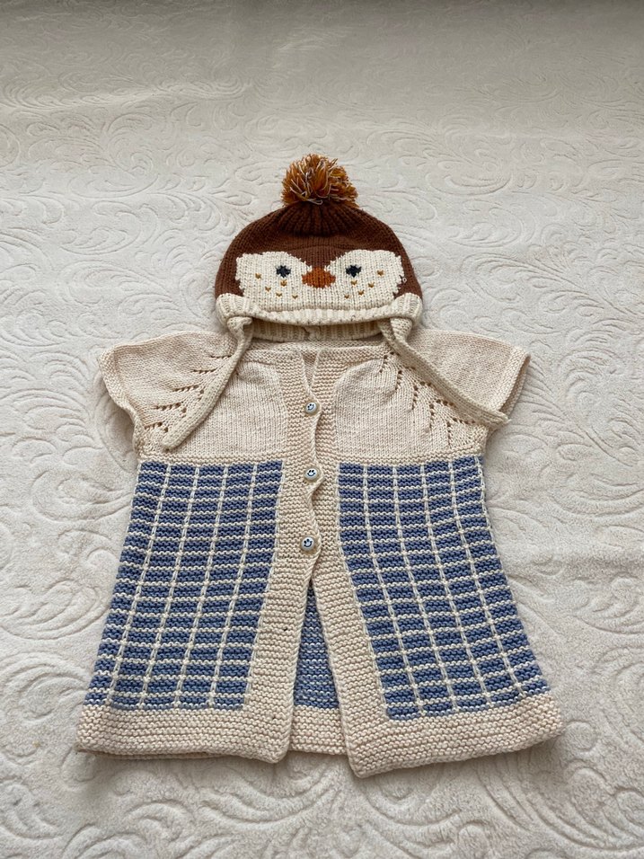 Ekoseli Örgü Erkek Bebek yelek bere
