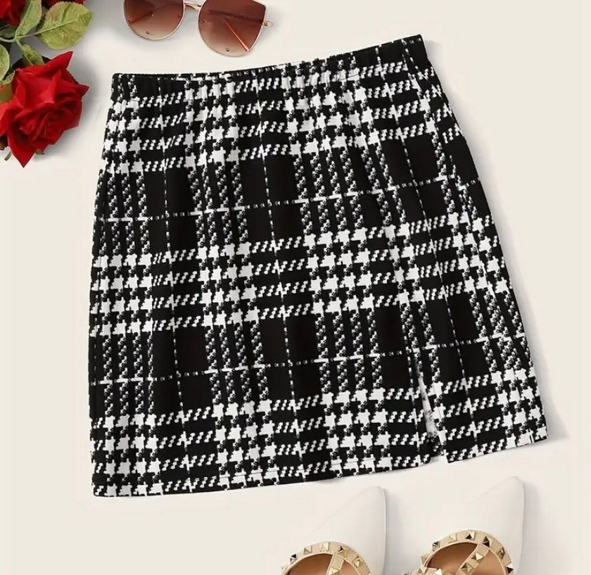 Siyah beyaz ekoseli, pilili ve dar kesim bu mini etek, sentetik kumaştan üretilmiştir. Günlük kullanıma uygun, Paris esintili şık bir sokak stili sunar.
