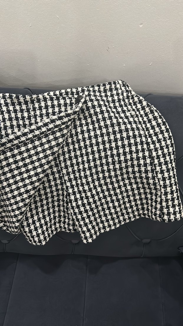 Ekoseli pilili mini etek, sentetik kumaştan yapılmıştır. Kısa boyu ve regular kesimi ile çağdaş ve Paris tarzını yansıtır. Günlük kullanıma uygundur.