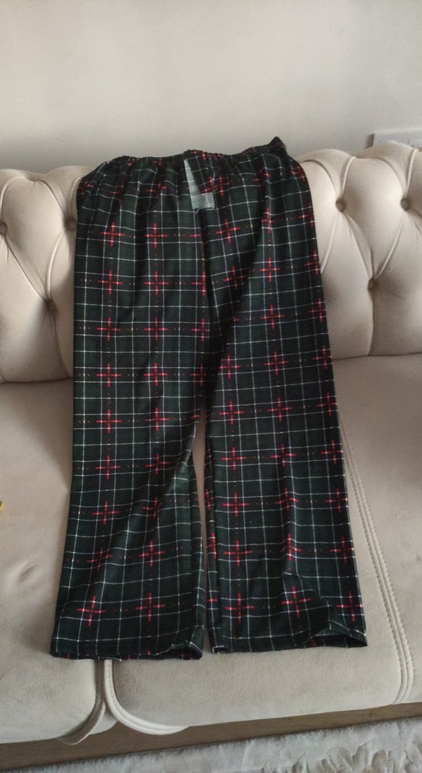 Bol kesim, koyu ekoseli ve lastikli bel detaylı rahat pijama altı. sentetik kumasdan rahattir.