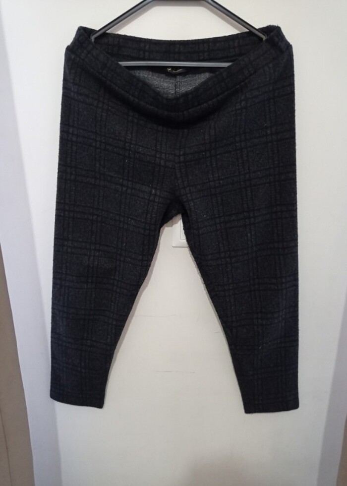 Ekoseli Siyah Büyük Beden Pamuklu Tayt