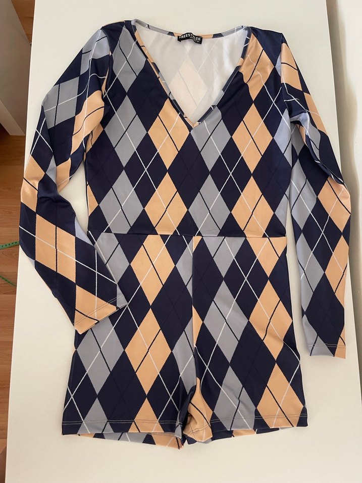 Kareli, uzun kollu, tulum. günlük rahat şıklık sunar. Sentetik kumaştan üretilmiştir. 1 defa kullanıldı