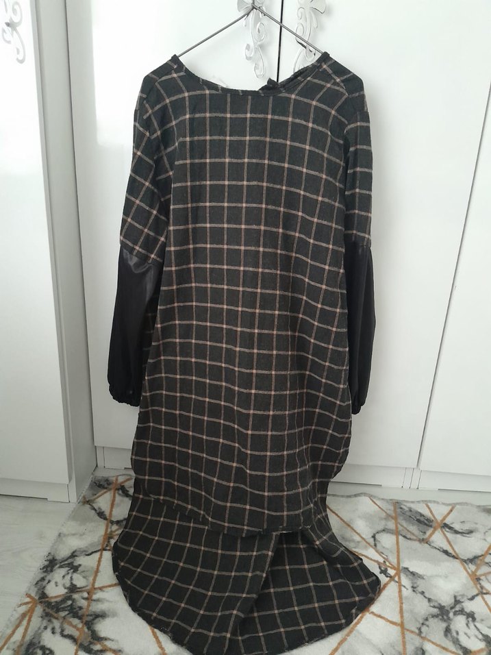 Ekoseli Uzun Kollu Kadın Elbise