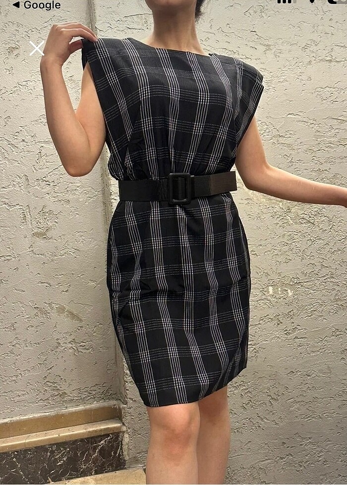 Ekoseli vatkalı elbise