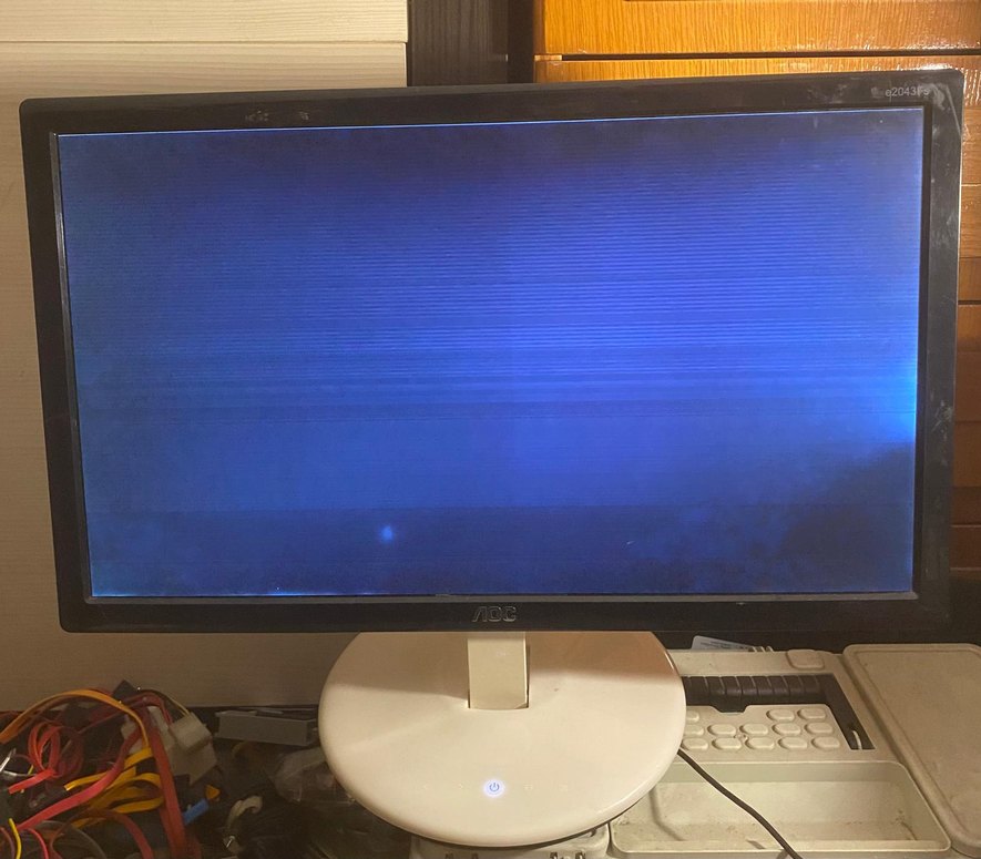 mavi renkli ekran ve beyaz yuvarlak tabanı olan AOC monitör. Stand üzerinde güç düğmesi bulunur arızalı monitör iade kabul etmiyorum