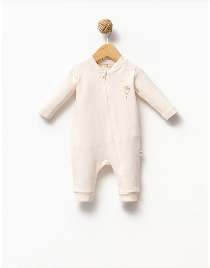 Ekru Jakarlı Erkek Bebek Tulum